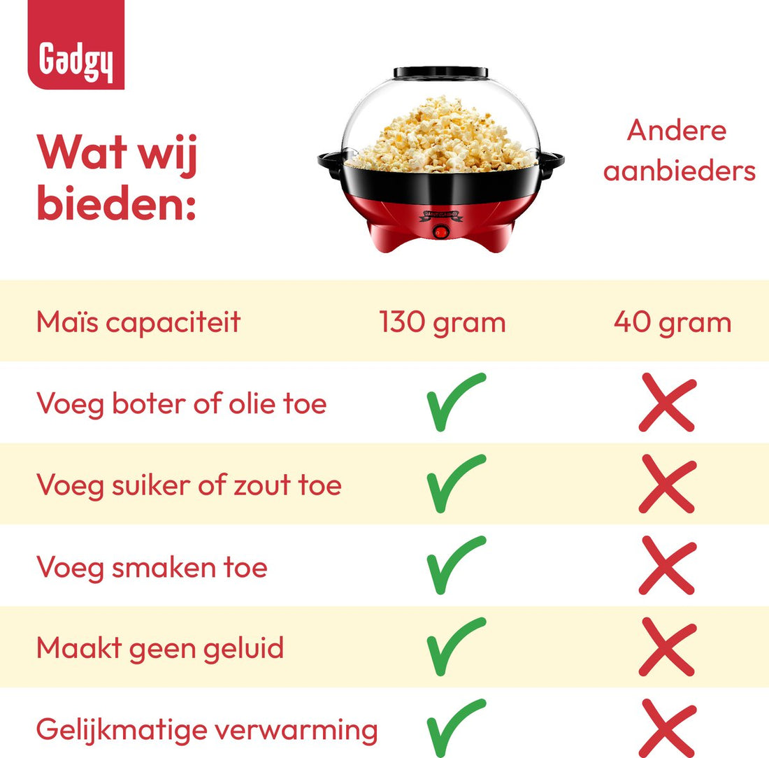 Zin in popcorn zoals in de bioscoop? Met deze Gadgy popcornmaker pop je in een paar minuten een grote kom knapperige popcorn. Ideaal voor filmavonden, verjaardagen of gewoon… omdat het kan. Geen gedoe, wél sfeer (en die heerlijke geur in huis).