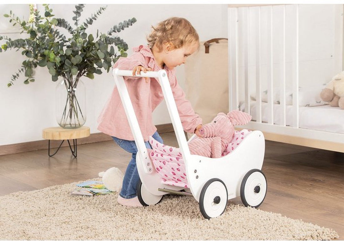 Gemaakt van FSC®-gecertificeerd hout. De wieg rolt soepel dankzij de rubberen houten wieltjes en blijft op z’n plek door het traploos instelbare remsysteem. De handgreep verstel je in drie standen.
